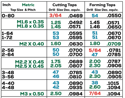 Magnetic Tap Drill Chart Reference Magnet | 8.5" x 10.5"